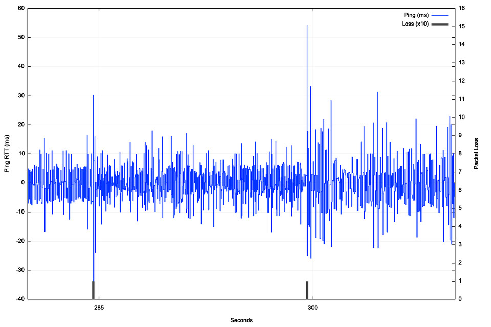 Ukupna stopa gubitka paketa, kada se meri pomoću ping-ova u intervalu od 1 sekunde, tokom dužeg perioda, je nešto iznad 1%, kao dugoročna prosečna stopa gubitka.