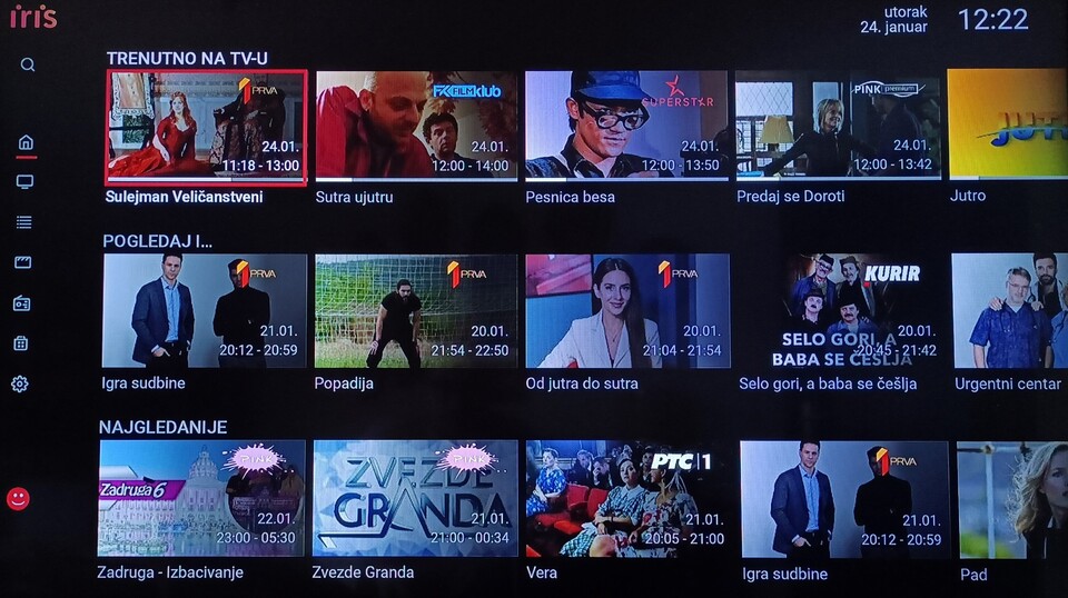 U tekstu možete videti fotografije izgleda nove Iris TV platforme. Za sada nema nikakvih razlika u samom funkcionisanju TV usluge.