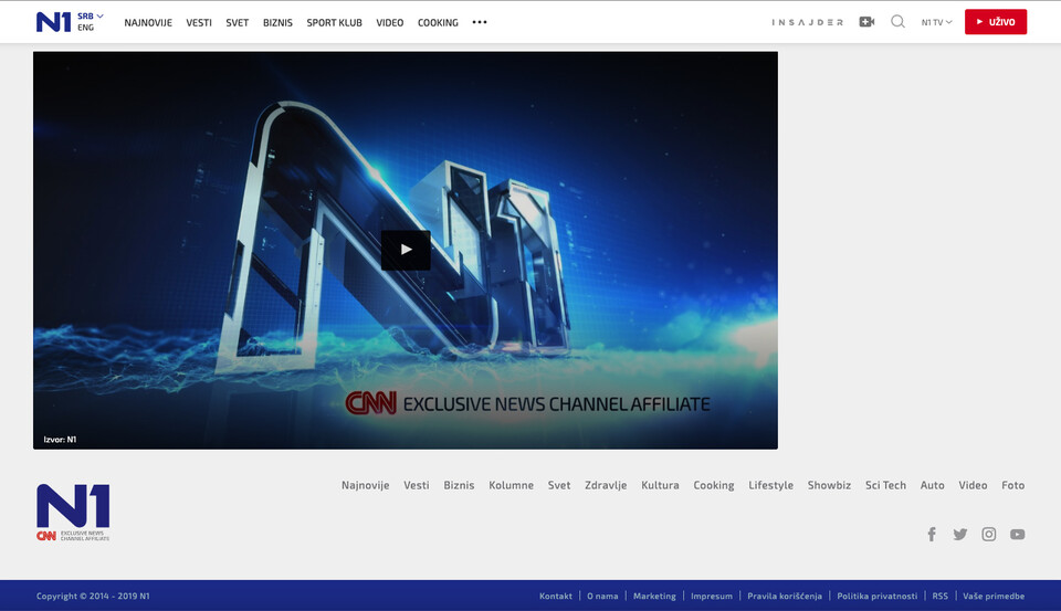 Malo ko se seća toga, ali se N1 mogao gledati besplatno, doduše u SD rezoluciji i sa ogromnim watermarkom "streamed by united.cloud", na sajtu N1 Srbija. Onda, kada je United Media poslala dopis Kopernikusu da obustavi emitovanje UM kanala pod pretnjom tužbe za pirateriju, 6. januara 2019. godine, doneta je odluka da se strim N1, u tako niskoj rezoluciji, praktično neupotrebljiv zbog tog watermark-a, skloni sa sajta N1, a da se link zameni sa linkom ka SBB-ovim paketima van mreže. To je ovako izgledalo nekad.