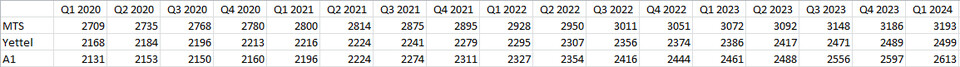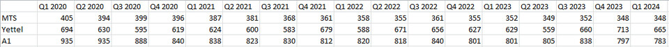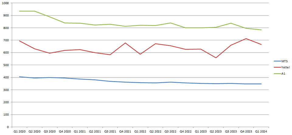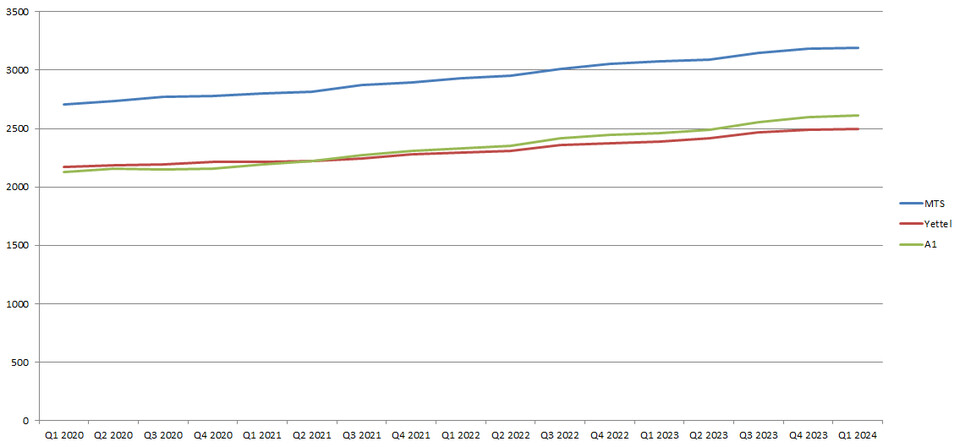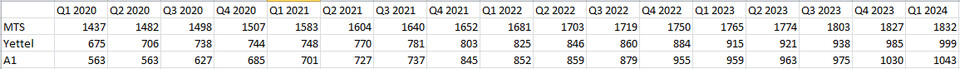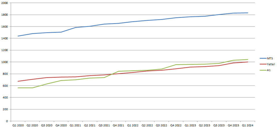 - MTS ima najviše baznih stanica, i prati trend rasta druga 2 operatora
