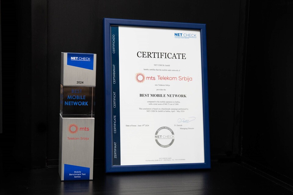 mts je proglašen najboljom mobilnom mrežom na osnovu uporednih merenja specijalizovane nemačke kompanija NET CHECK, čime je još jednom potvrdio da je vodeći mobilni operator u Srbiji. Nakon opsežnih istraživanja i merenja sprovedenih u aprilu i maju ove godine, ova kompanija koja se bavi uporednom analizom mobilnih mreža potvrdila je vrhunski kvalitet mobilnih usluga u mts mreži širom Srbije.