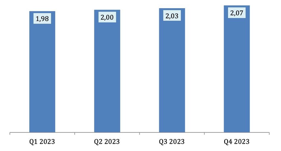 Ukupan broj korisnika je porastao u odnosu na početno razdoblje 2023. godine i sada iznosi 2,07 miliona korisnika broadband Interneta.