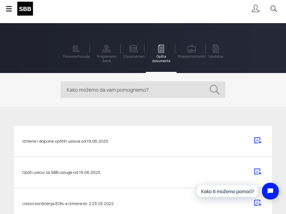 Dakle, upoređivanjem Opštih uslova za SBB usluge od 19.16.2023. godine sa dokumentom Izmene i dopune Opštih uslova od 19.06.2023. godine (oba dokumenta stoje na prvim mestima liste dokumenata jedan iznad drugog), može tačno da se vidi šta je izmenjeno.